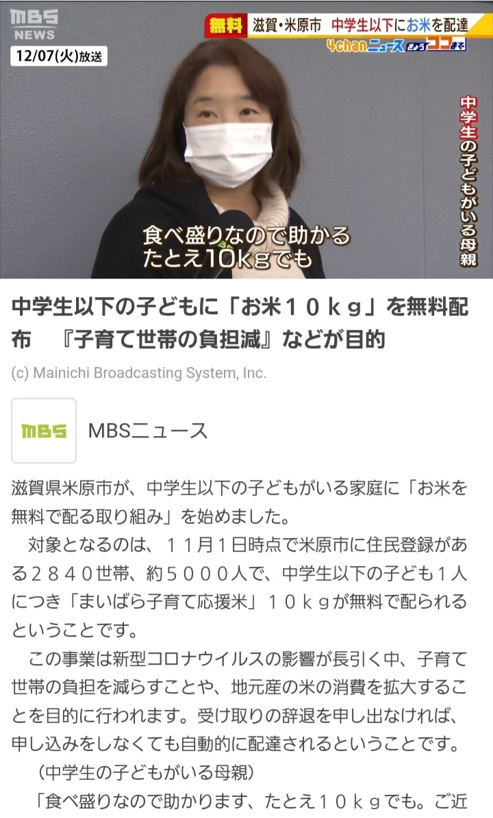 お米を無料で配るなら、全世帯にするべきよ。職権の乱用です。